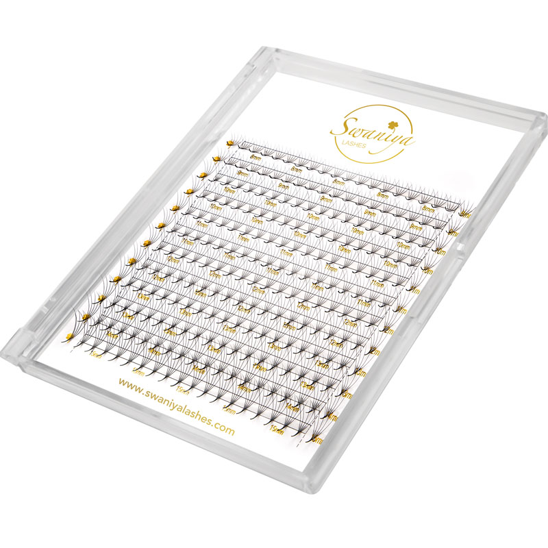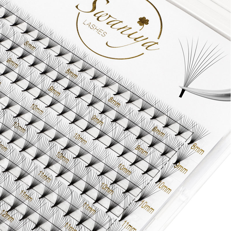 Kuna üks professionaalseid kvaliteetseid glamuurseid superfännide ripsmepikenduste tootja, võite olla kindel, et ostate Swaniya®-ist glamuurseid eelmaine superfännide ripsmepikendusi ja pakume teile parimat müügijärgset teenust ja õigeaegset kohaletoimetamist. Swaniya eelmaine superfännid on hoolikalt meisterdatud üliõhukeste ripsmetega, mis on eelnevalt ahvad, andes täieliku ja mahukama ilme. Need sobivad ideaalselt neile, kes soovivad oma ripsmemängule dramaatilist puudutust lisada, ilma et oleks kompromiteeriks kvaliteeti.